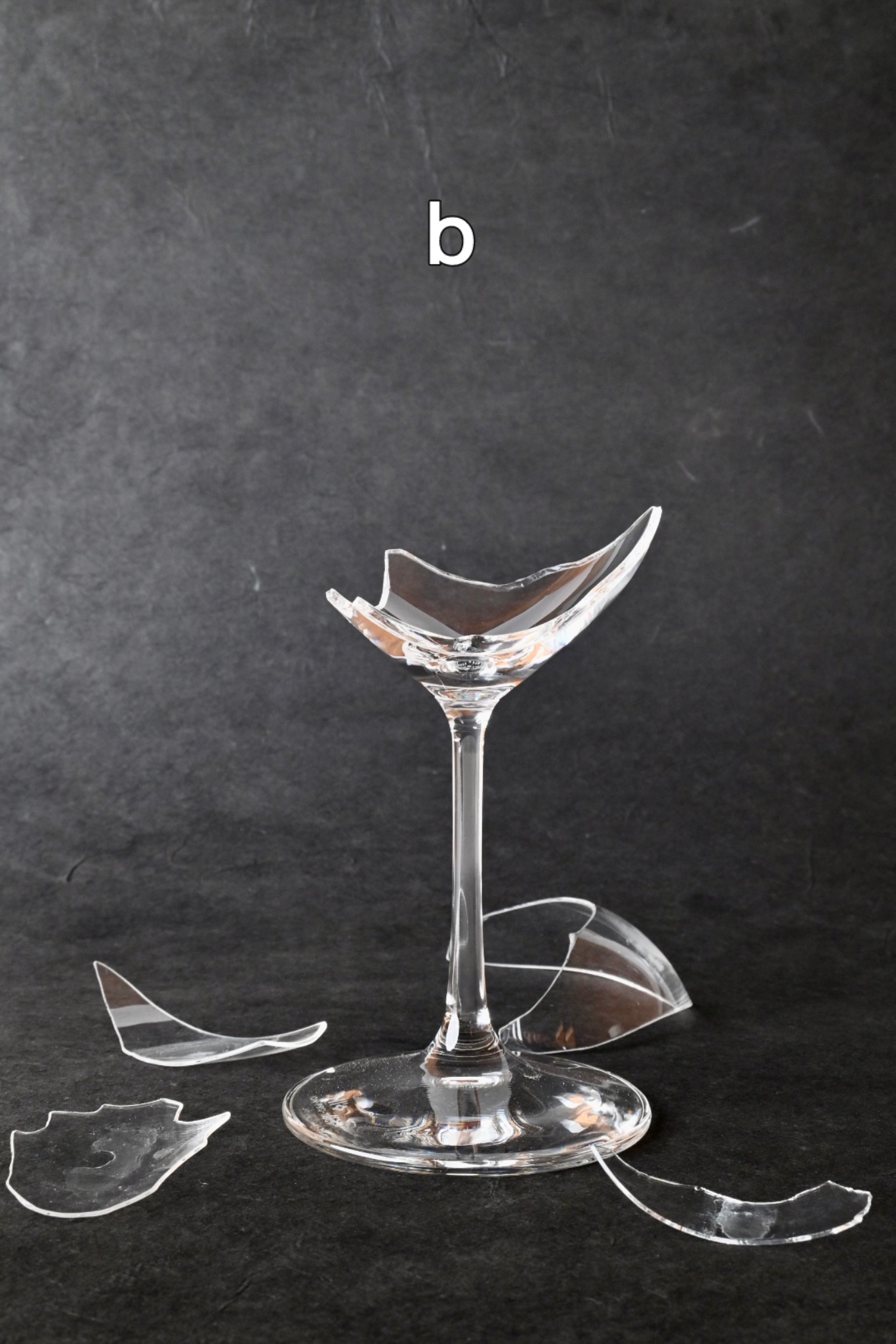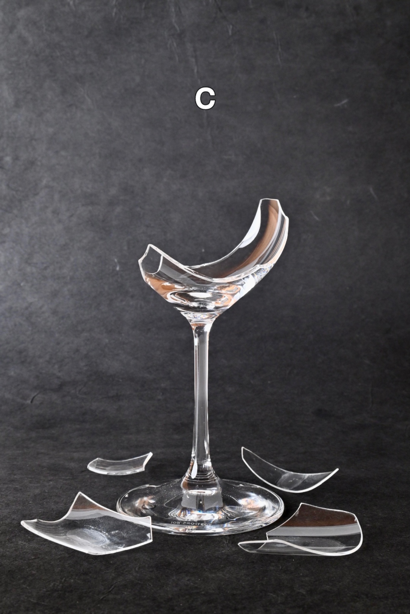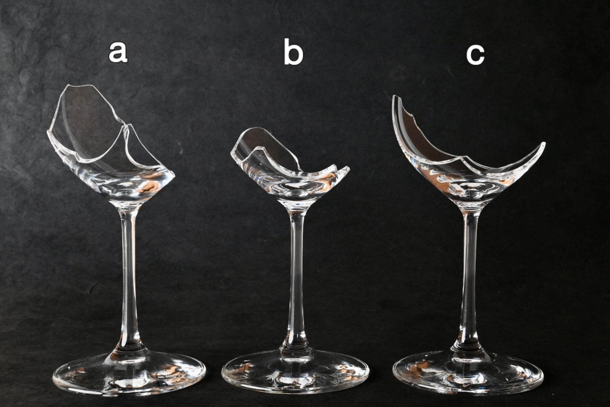 ガラスの割れ方、破片の形に同じものはないため、それぞれが唯一無二のワイングラスになります。